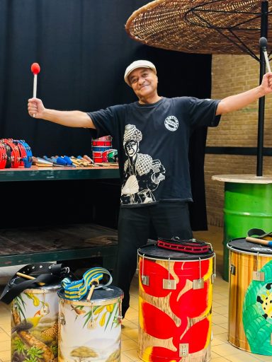 Edson Gomes uit Rio de Janeiro geeft al meer dan 20 jaar percussieworkshops vol humor, energie en plezier.