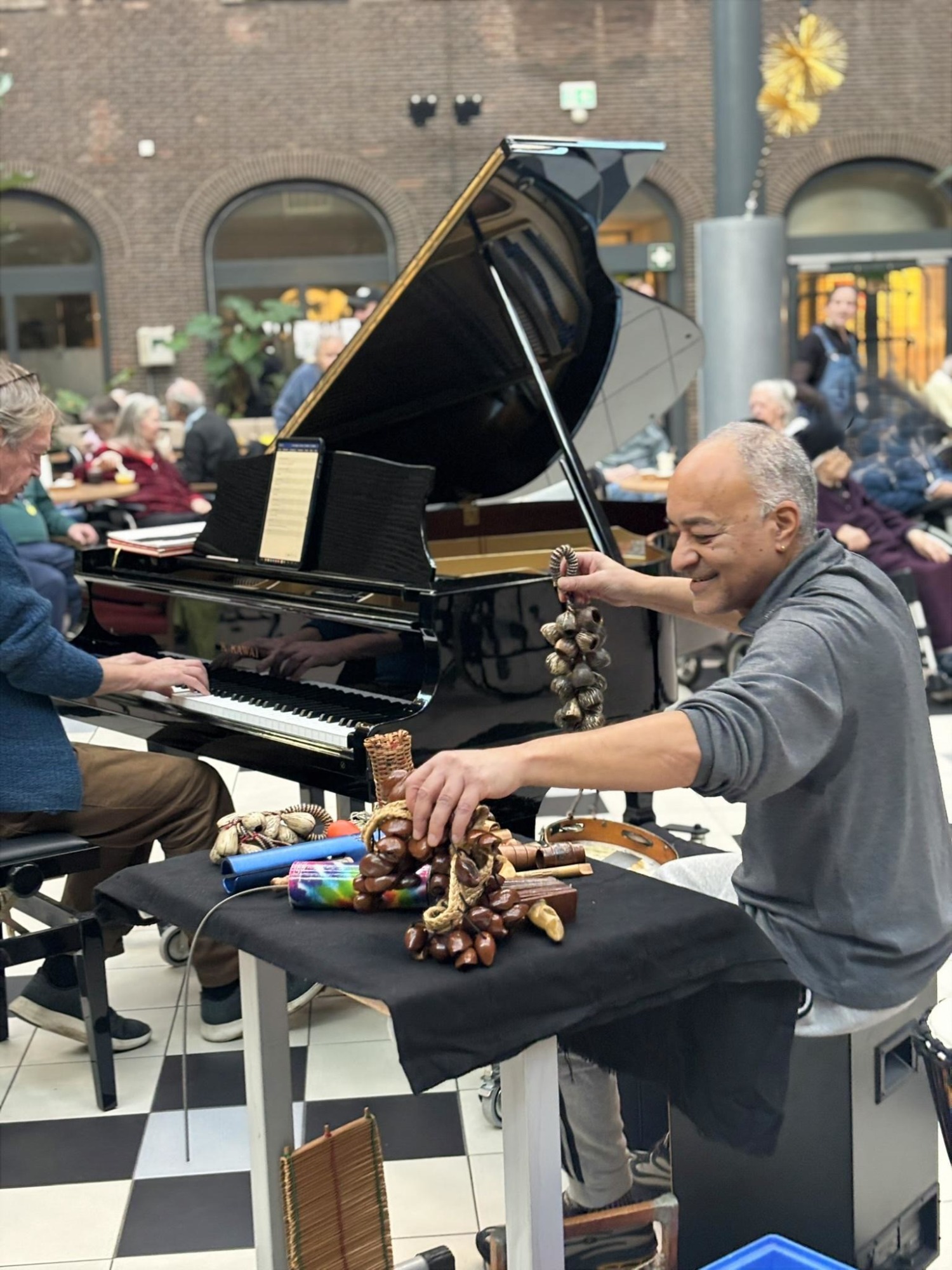 Ook ouderen genieten volop van deze muziekactiviteit. In buurthuizen en verpleeghuizen doen zij actief mee met instrumenten en worden meegenomen in het ritme. Of kies voor een optreden waarbij je wegdroomt bij piano en percussie met (vogel)geluiden uit de Amazone.