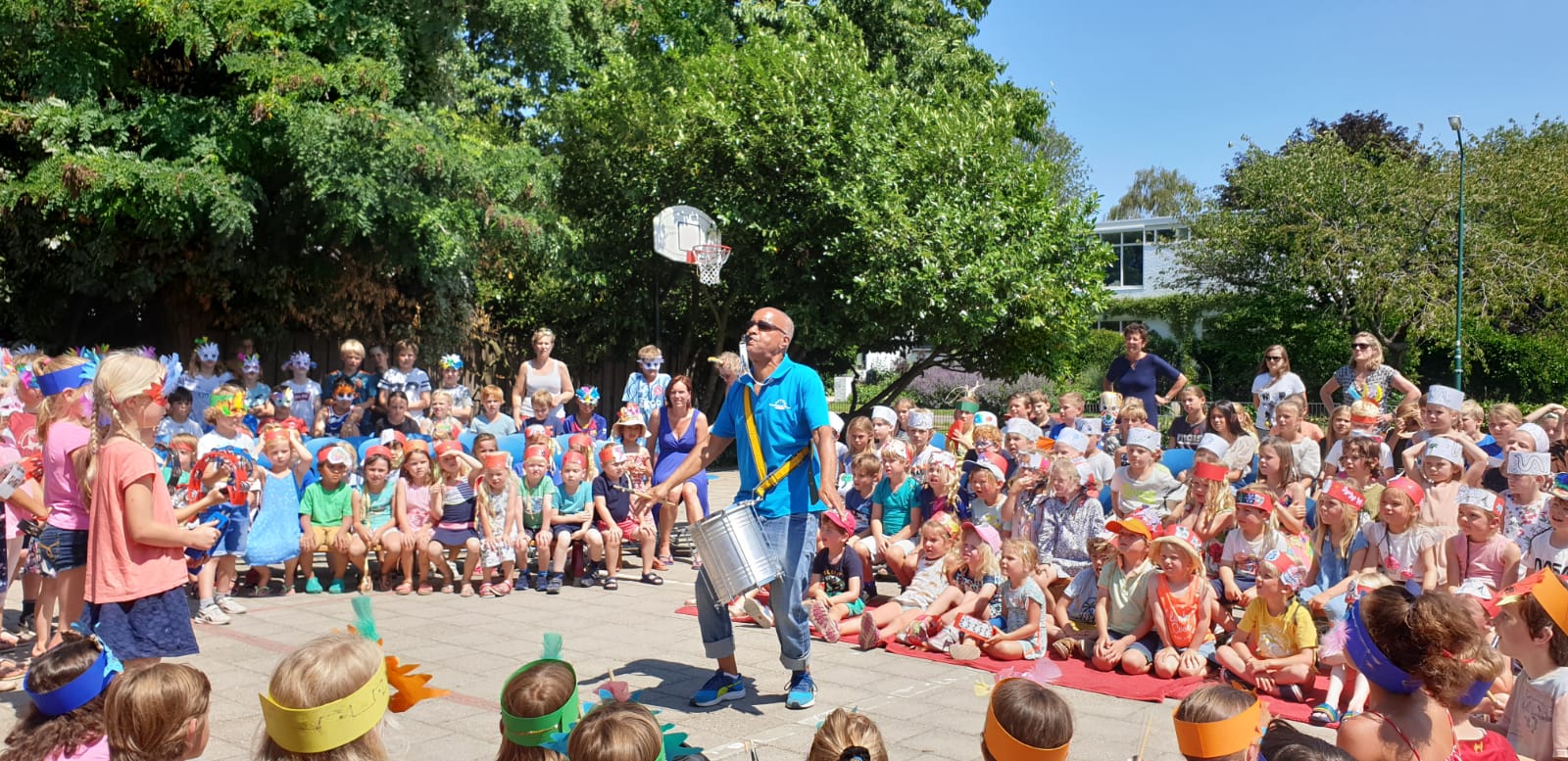 Op school is een percussieworkshop een ideale activiteit, bijvoorbeeld als afsluiting van het schooljaar of tijdens een projectweek. Voor leerlingen, leraren of ouders; iedereen kan meedoen.
